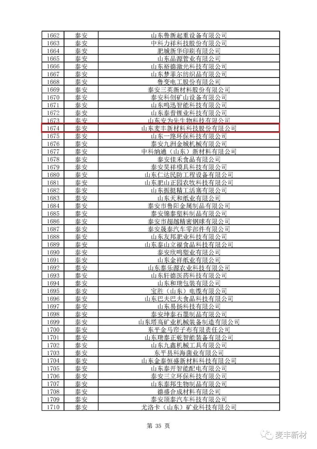 2022年6月24日,山東省工業(yè)和信息化廳公布了《關于2022年度山東省“專精特新”中小企業(yè)名單的公示》,山東麥豐新材料科技股份有限公司被認定為2022年度省級“專精特新”企業(yè)。